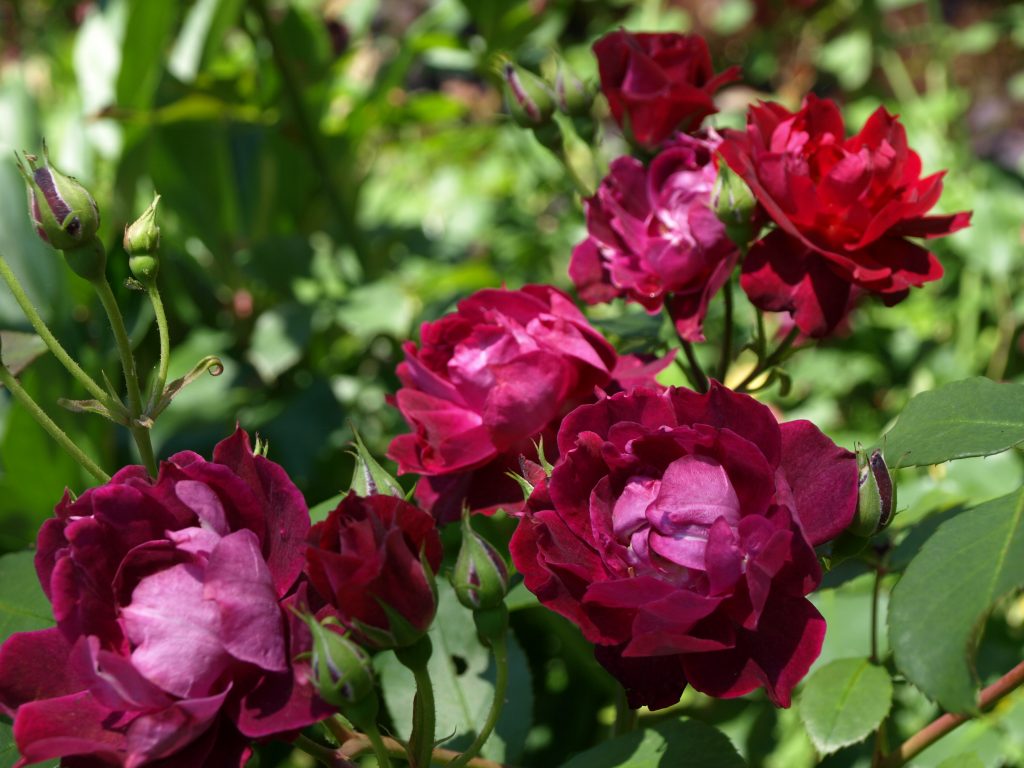 ca. 150 Gehölze, davon 27 Rosen in 17 verschiedenen Sorten,